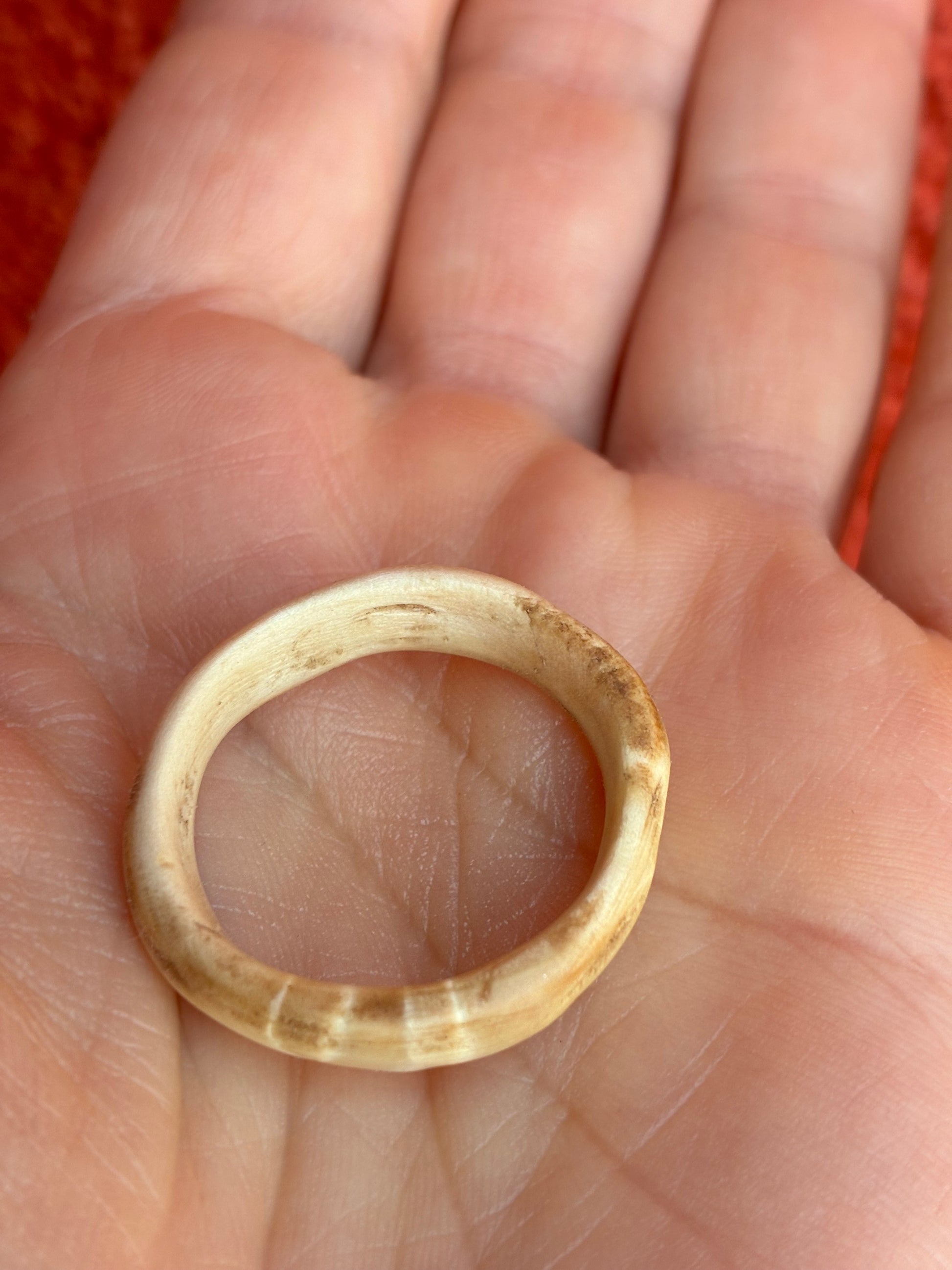 Diese Baumperle wurde von mir von Hand gepflückt, geschält und verarbeitet. Farbe, Form und Größe der Perle wurden von der Natur gemacht. Ring wurde aus einer Baumperle geschnitzt. Ovale Form und unregelmäßige Höhe siehe Fotos.