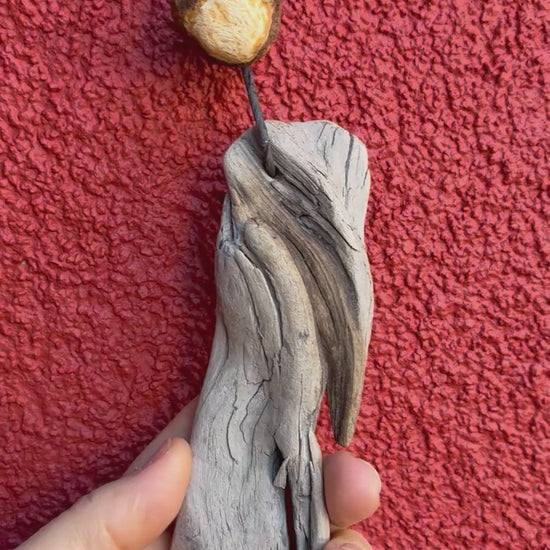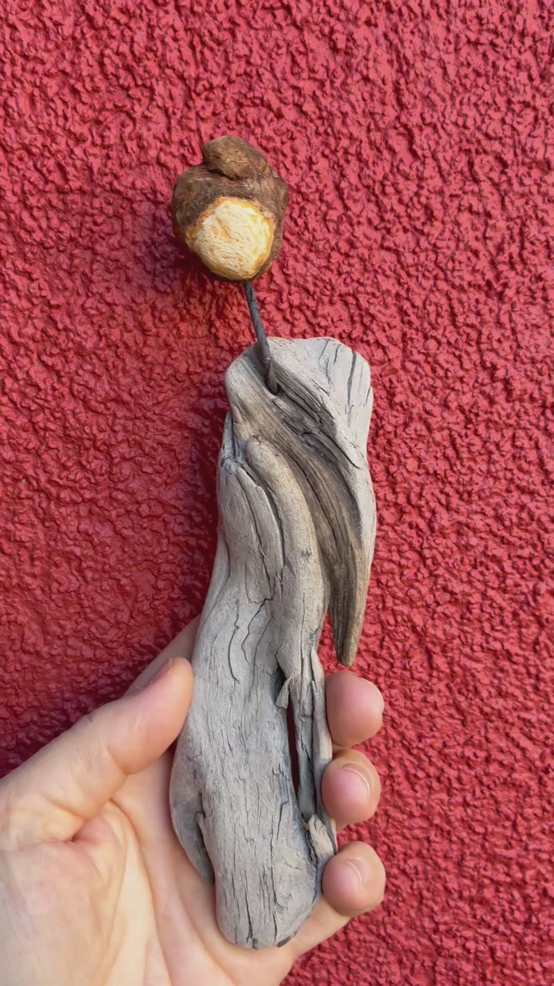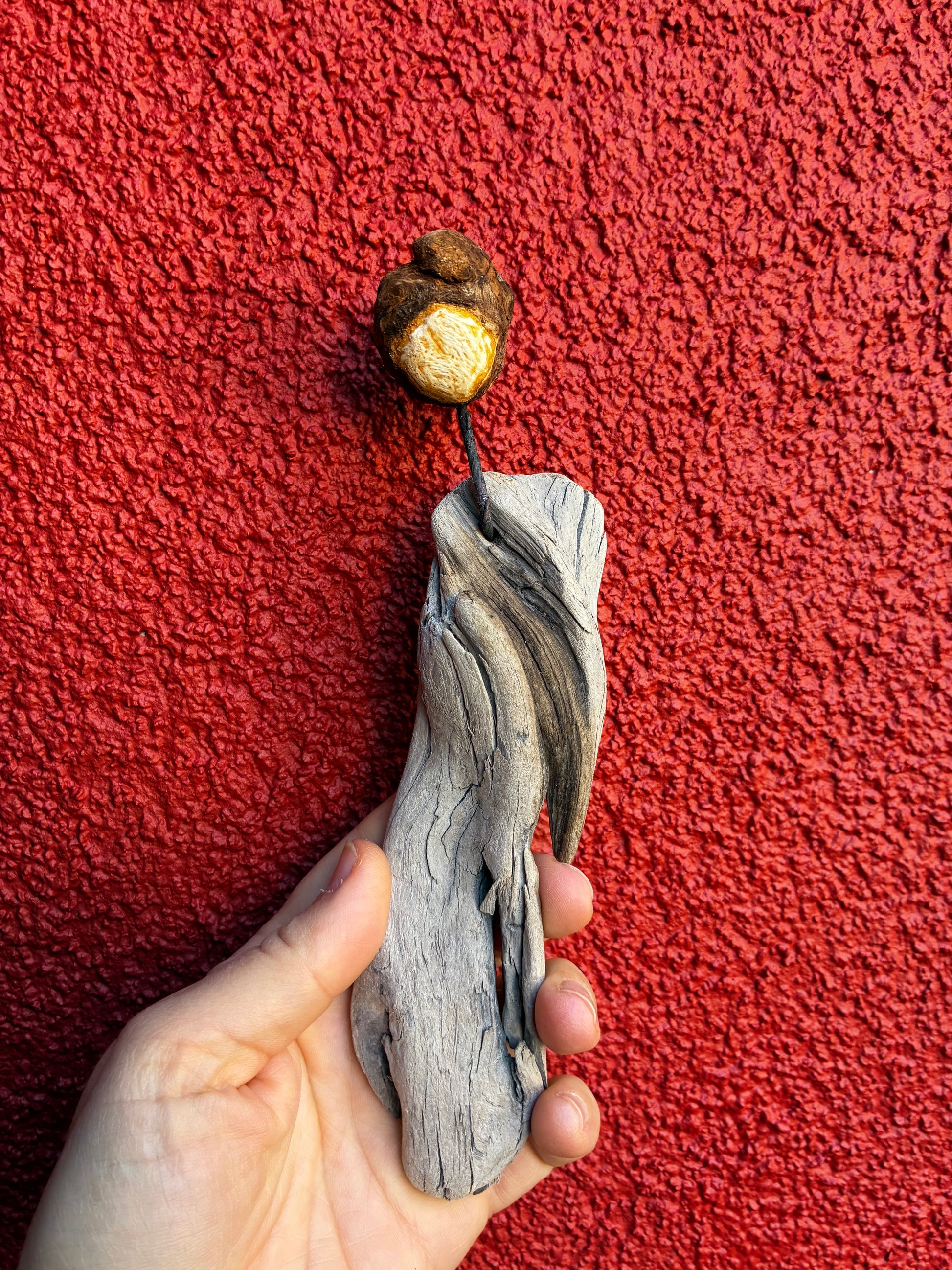 Sonnenkuss Göttin. Diese Baumperle wurde von mir von Hand gepflückt, geschält und verarbeitet. Farbe, Form und Größe der Perle wurden von der Natur gemacht. In Kombination mit Schwemmholz und Eisen erwacht sie zum Leben in deiner Fantasie.